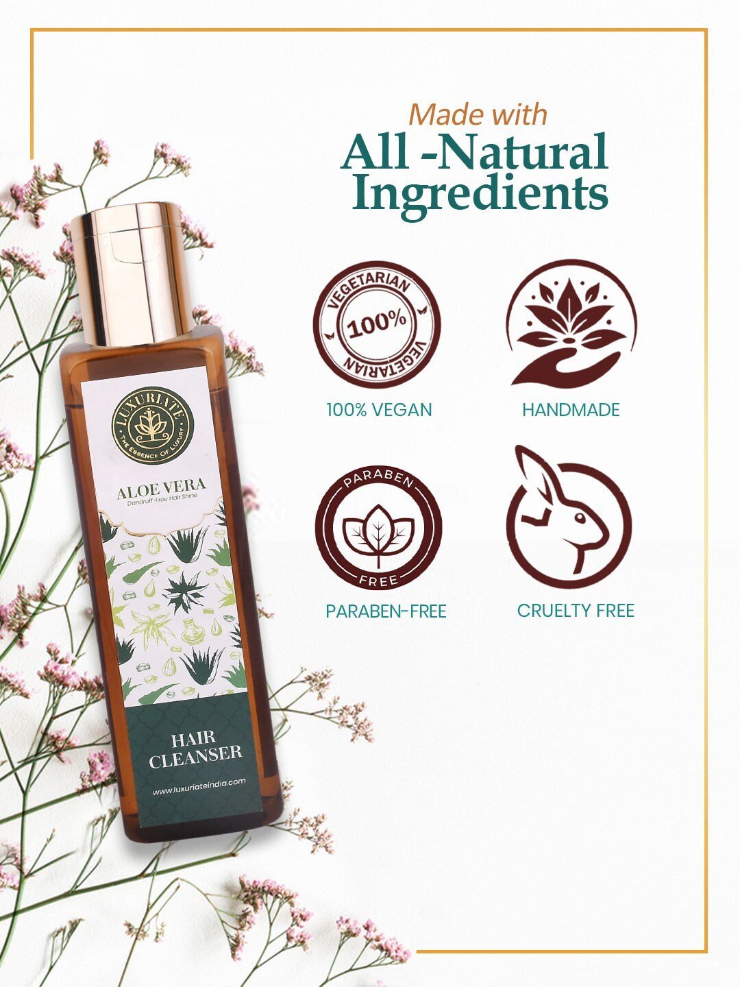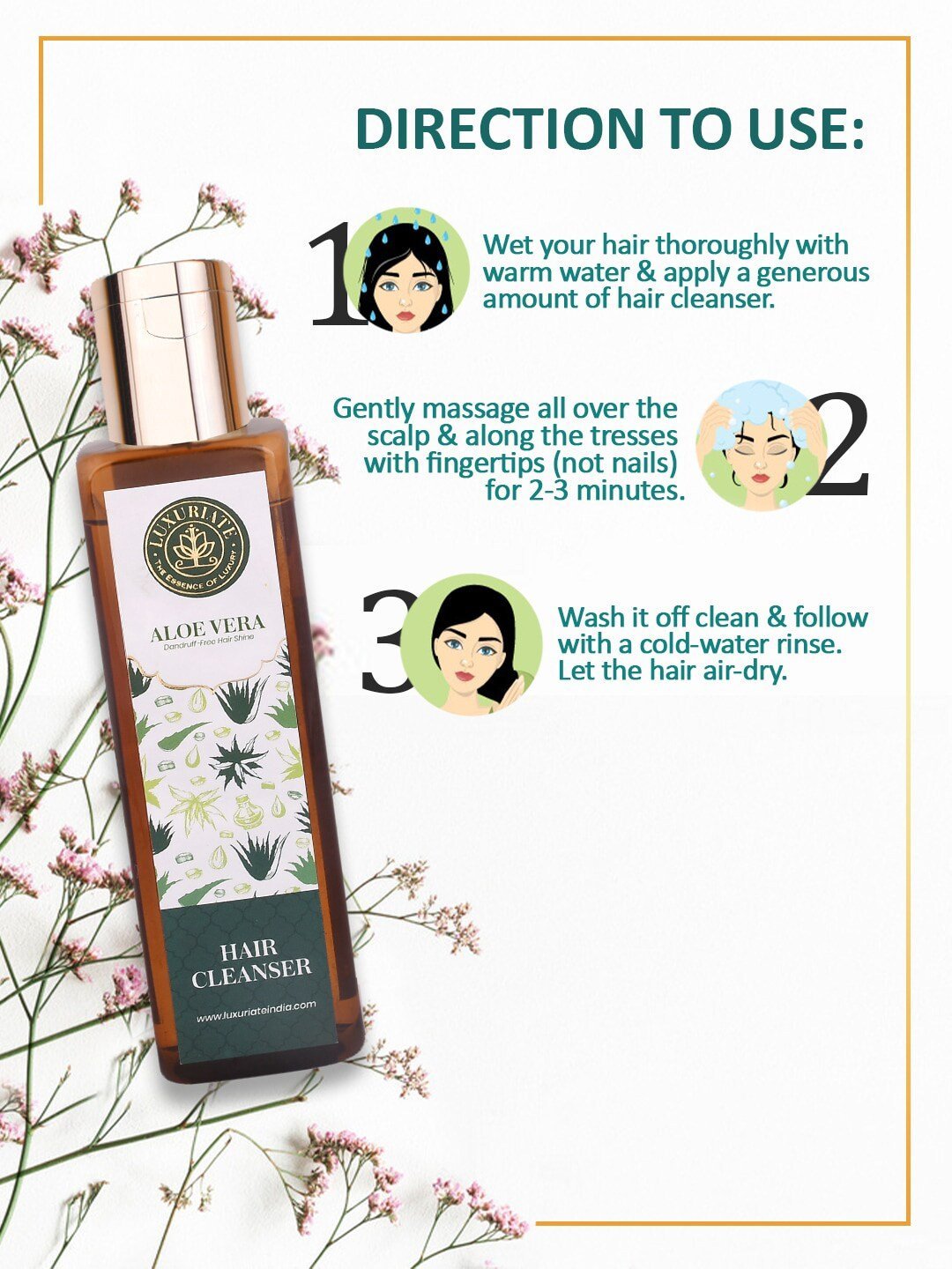 Luxuriate Aloe Vera Hair Cleanser contains photolytic enzymes which repairs dead skin cells on the scalp. It also acts as a great conditioner and leaves your hair all smooth and shiny. It promotes hair growth, prevents itching on the scalp, reduces dandruff and conditions your hair. Aloe Vera refreshing formula purifies & nourishes scalp and hair. The pH balanced formula leave hair full of natural, shine, Strength & Sheen.