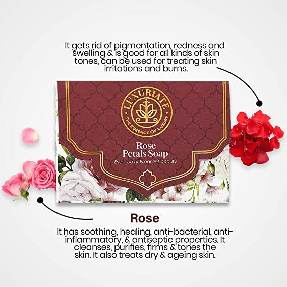 Rose Soap : Luxuriate Rose Soap protect the skin from moisture loss and prevent free-radicals from entering the skin with aromatic rose extracts for freshness. Indulge in a personal aromatherapy experience that is calming and purifying.
