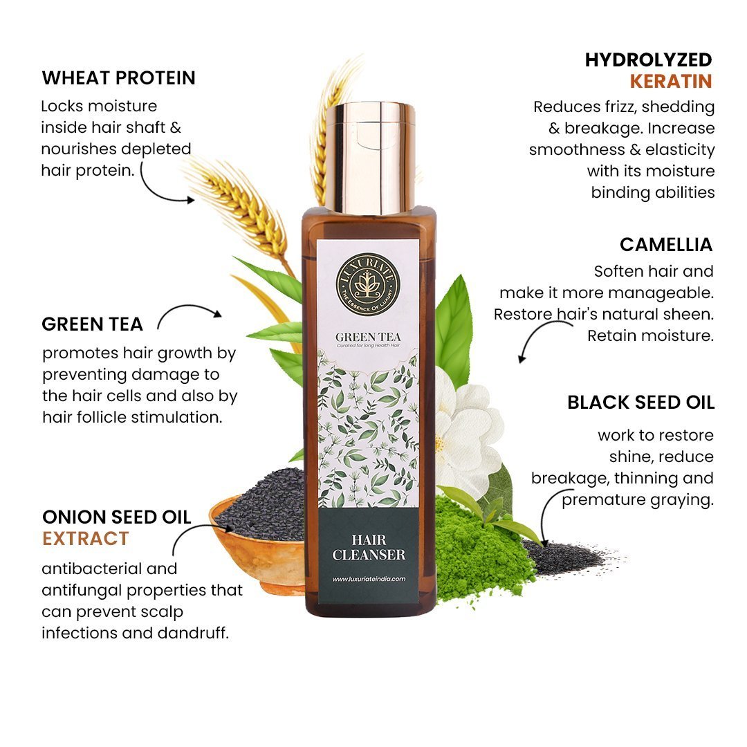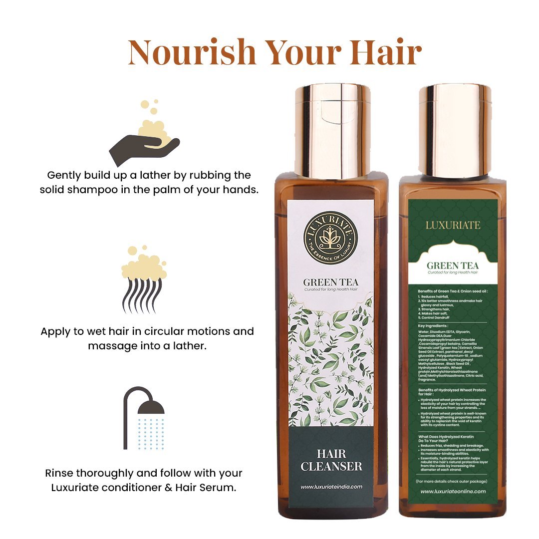 Luxuriate Green Tea Hair Cleanser is color safe and ideal for all hair types which makes it a daily hair repair shampoo. Tea tree oil, peppermint and lavender invigorate the scalp and leave hair smelling great. Luxuriate Green Tea Hair Cleanser contains special ingredients and tea tree oil which help to wash away impurities and leaving hair fresh, clean, full of vitality and luster. Fragrance : The reviving scent of tea tree provides an invigorating aromatherapy experience like no other. No more hair loss problems by applying green tea on the hair roots. Make your hair healthy and add perfect shine.
