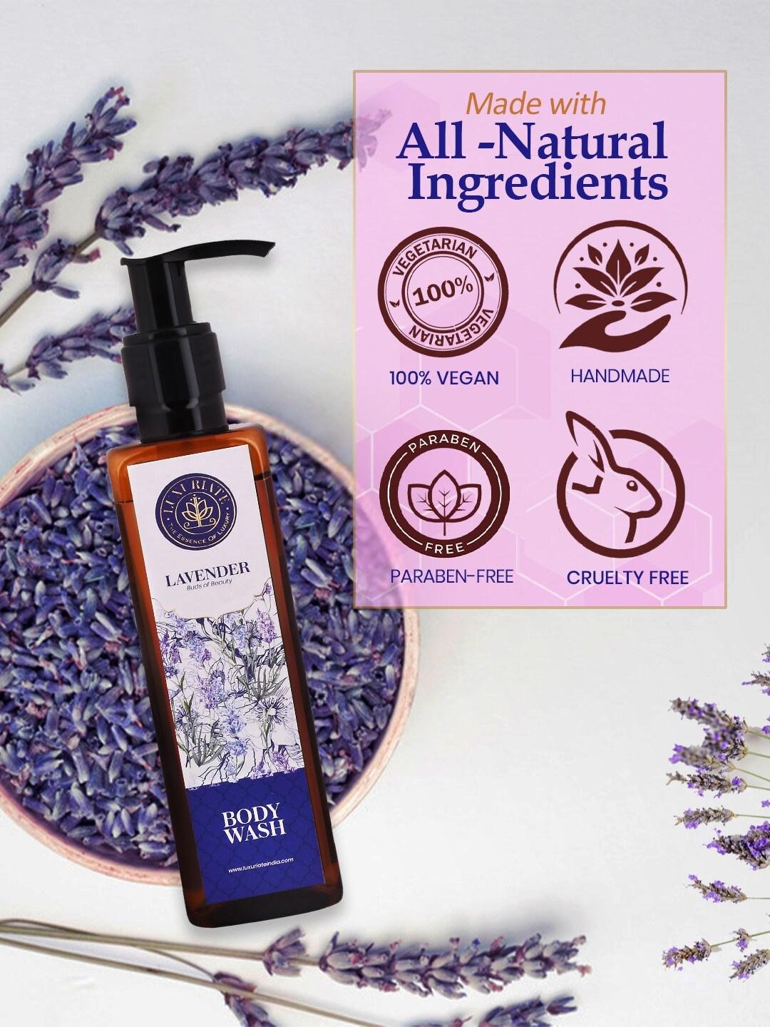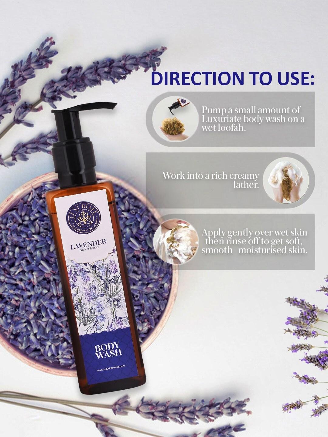 Luxuriate Lavender Buds of Beauty Fresh Body Wash Shower Liquid is a proportionate blend of 100% pure and natural Lavender Essential Oil face to toe Body Wash from Luxuriate that soothe your skin while relieving tension with the powerful effect of Lavender. The hydrating and calming effects will leaves your skin quenched and your senses relaxed as you wash away life stresses. Luxuriate Lavender Body Wash shower Liquid cleanser with ingredients Glycerin Body Wash base, Lavender Essential Oil. It is effective cleanser that cleans your body with softness and gently sloughs off dirt and impurities and keeps your body nourished and moisturized.