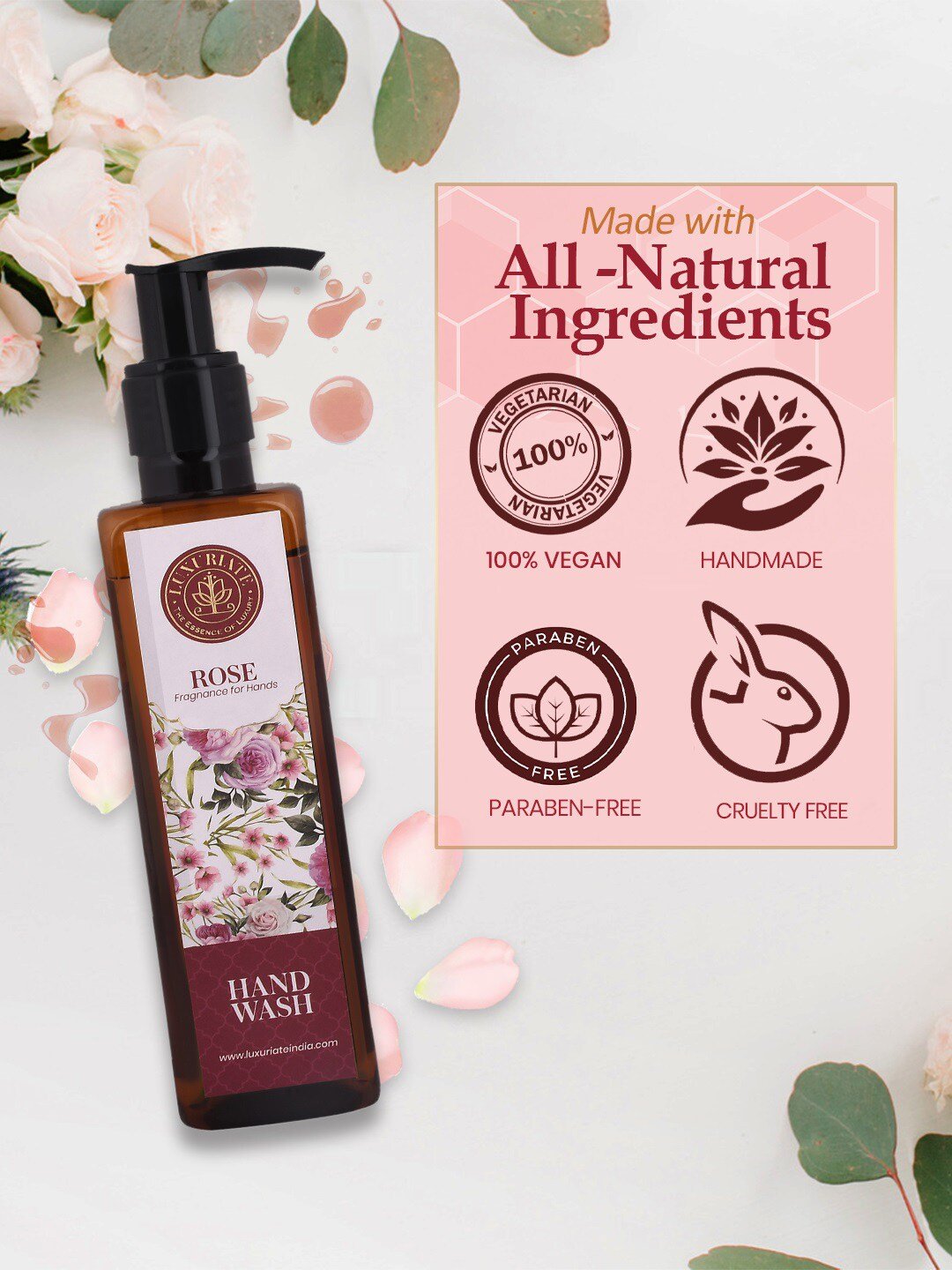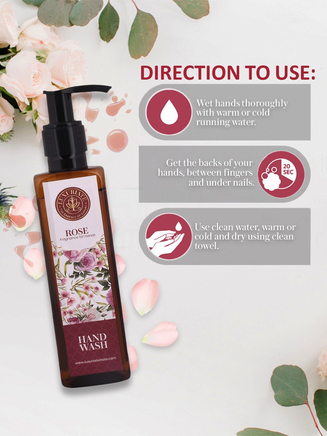 Luxuriate Rose Anti Bacterial Moisturizing Hand wash is the germ protection formula that keeps you healthy and protected from 100 illness causing germs. Anti bacterial and nourishing foaming hand wash, contains moisturizing and soothing properties, protects your hands in one single wash. Rose extracts is an amazing astringent that soothes the skin form within and provide a gentle, cooling effect. It is a perfect combination of gentle wash and cleansing. Premium hand soap gel removes impurities, Enhances hydration, and rinses away completely, leaving your skin srisp, soft, snd clean.