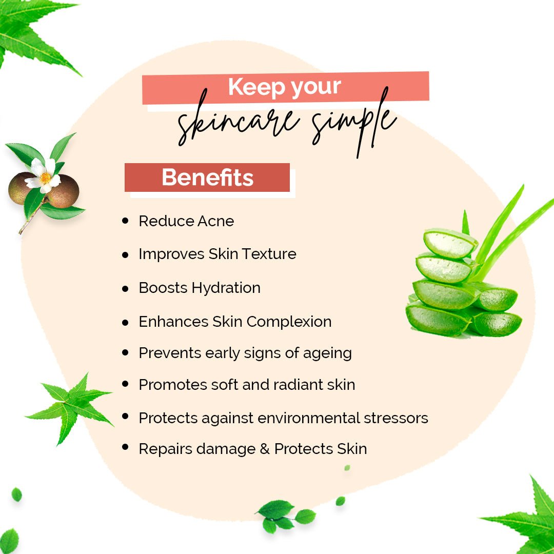 Neem oil, Aqua, Allantoin, Cocamidopropyl Betaine, Glycerin, Sodium cocoamphoacetate, propylen glycol, Sodium, Salicyclic acid, Sodium Iauroyl sarcosinate, Decyl Glucoside, Sodium PCA, Polysorbate 20, Polyquaternium-7, niacinamide, Sodium Hyaluronate, Aloe barbadensis leaf extract, Tea Tree, Allantoin, Methylchloroisothiazolinone (and) Methylisothiazolinone, fragrance, Citric Acid.
