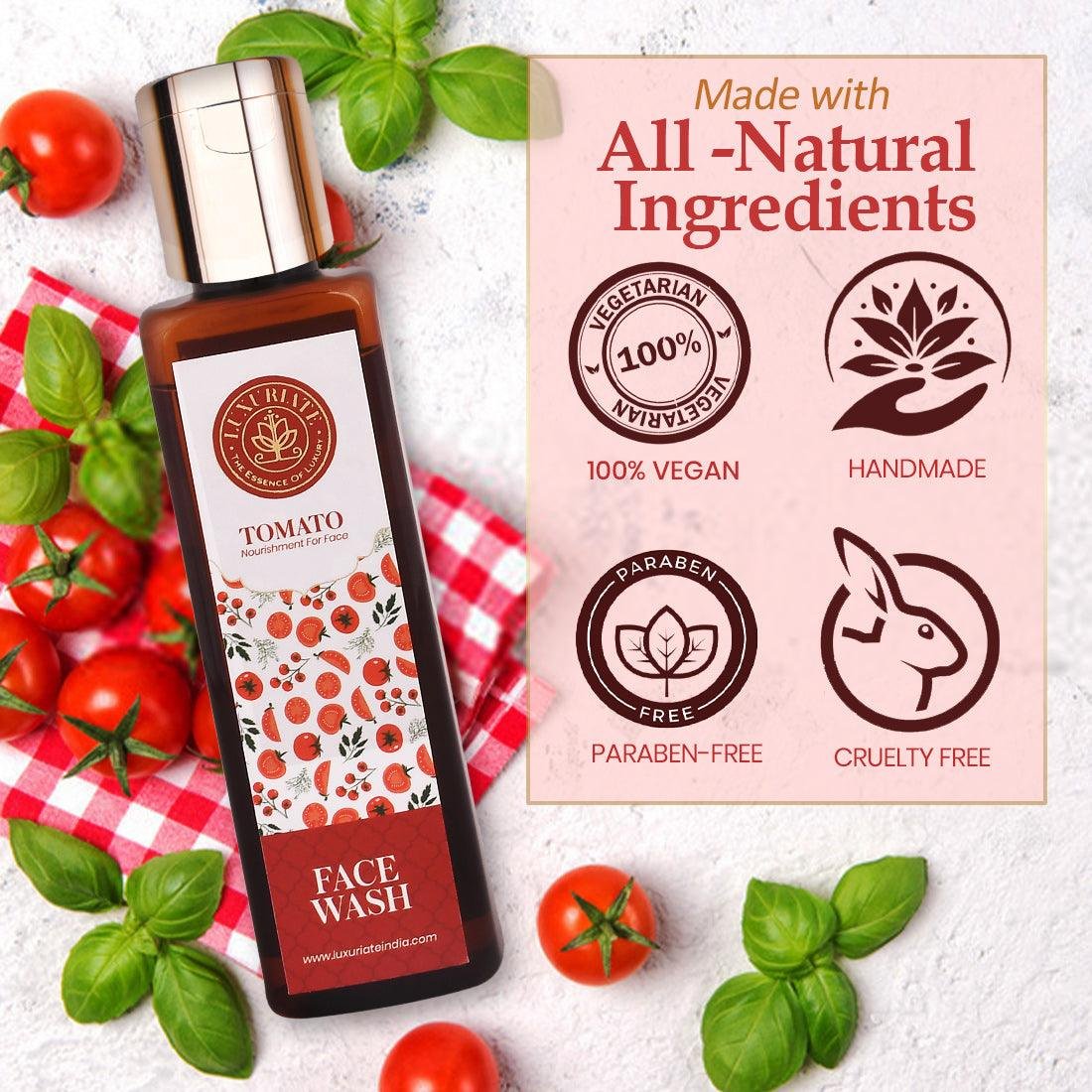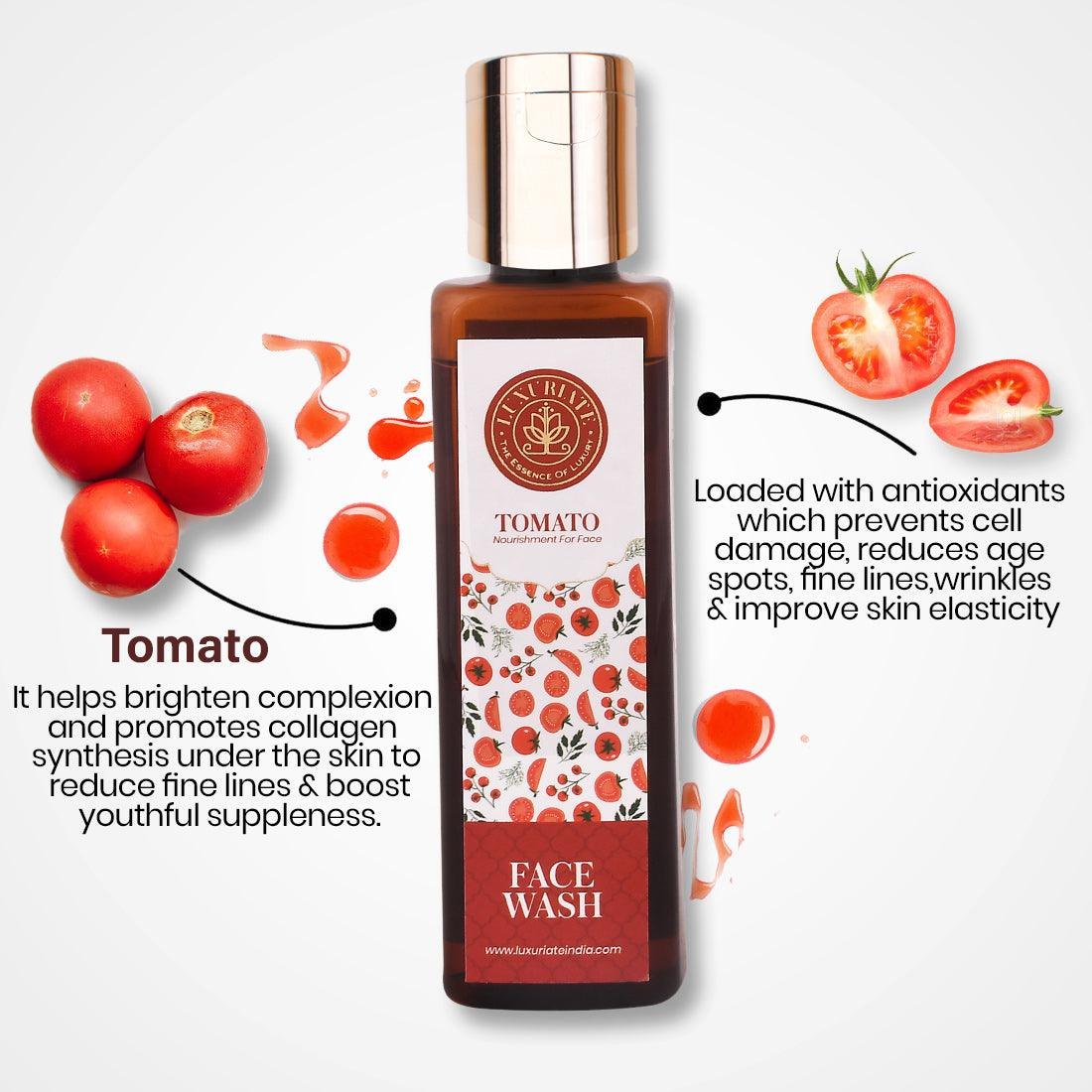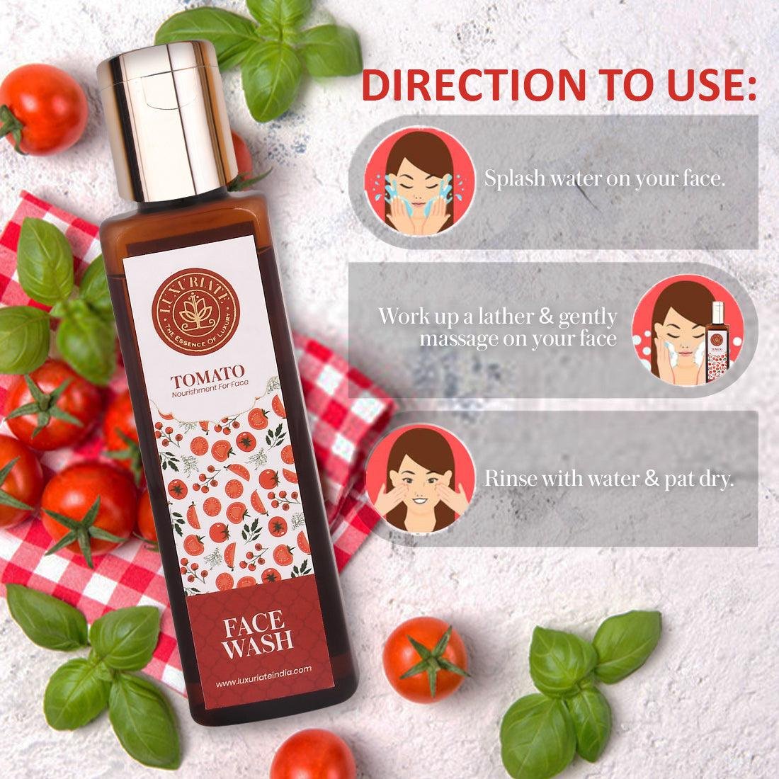 Luxuriate Tomato Face Wash Cleanser not only cleanses your skin effectively but also moisturize it leaving it soft and smooth. It boosts radiance and brightens the texture level by deep cleansing the skin. Luxuriate Tomato Face Wash extracts reduce oiliness and keeps skin tighter, cleaner with ample amounts of astringent properties brightening up your face instantly. Advanced face wash with active fruit boosters which revive dull skin.