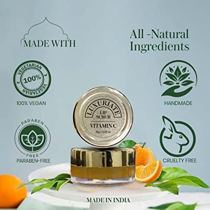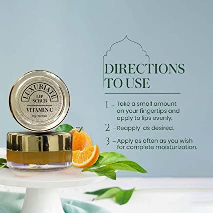Luxuriate Vitamin C Lip Scrub has skin-friendly natural ingredients in its formulation that scrub off your flaky, dry lips gently, keeping them hydrated throughout the day. Gentle and safe unisex lip scrub. Easy to carry, it comes in small travel friendly Jar for any time moisturization. Our exfoliator works wonders to clear away dead skin and other junk while nourishing your lips with some of our favorite oils and extracts. When you’re done, your lips will exude health, happiness, and radiance – and they will feel as healthy as they look.